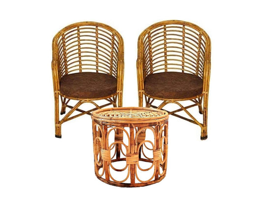 Cane Chair Set with Table: Perfect for Home, Office, Garden, and Balcony (Set of 2 with table)