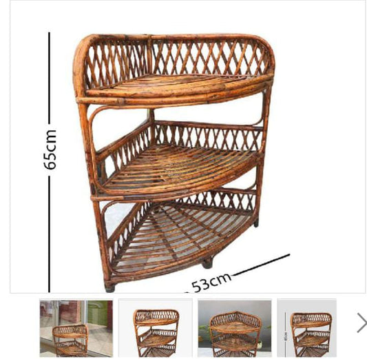 Cane Corner Rack | 3-Shelf Multipurpose Storage for Books, Plants & Home Décor