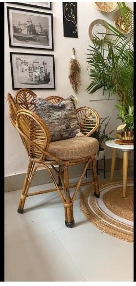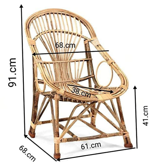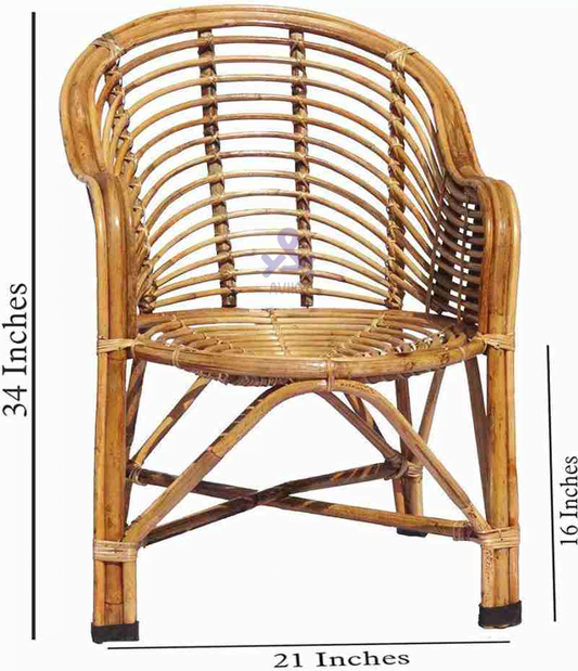 Bamboo Cane Chair with Cushion or Kids & Adults | Study Chair with Arm Rest | Use in Home | Office | Living Room | Balcony | Garden | Indoor & Outdoor
