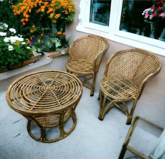 Bamboo Cane Chair for Home, Garden ,Balcony, Office, with Table (Set of 2 with table)