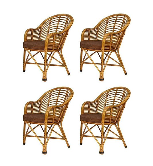 Bamboo Cane Chair, Kursi for Lawn Chair, Arm Chair, Room Chair, Cafe, Pubs, Bars, Restaurants, Indoor/Outdoor, Lawn, Cafeteria, Balcony,Garden with Cushion | Set of 4