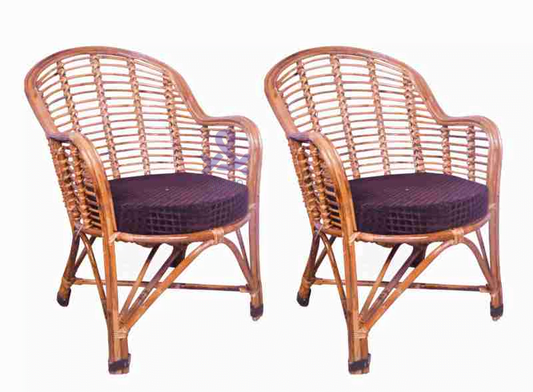 Bamboo Cane Chair,Kursi for Lawn Chair, Arm Chair, Room Chair, Cafe, Pubs, Bars, Restaurants, Indoor/Outdoor, Lawn, Cafeteria, Balcony,Garden. with Cushion | Set of 2