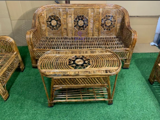 Cane Sofa Set with Table for Home, Living Room, Office, Garden, Resort with Cushion (commando bunai)