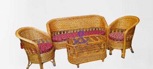 Cane Sofa Set with Table for Home, Living Room, Office, Garden, Resort with Cushion (model : Yuva))