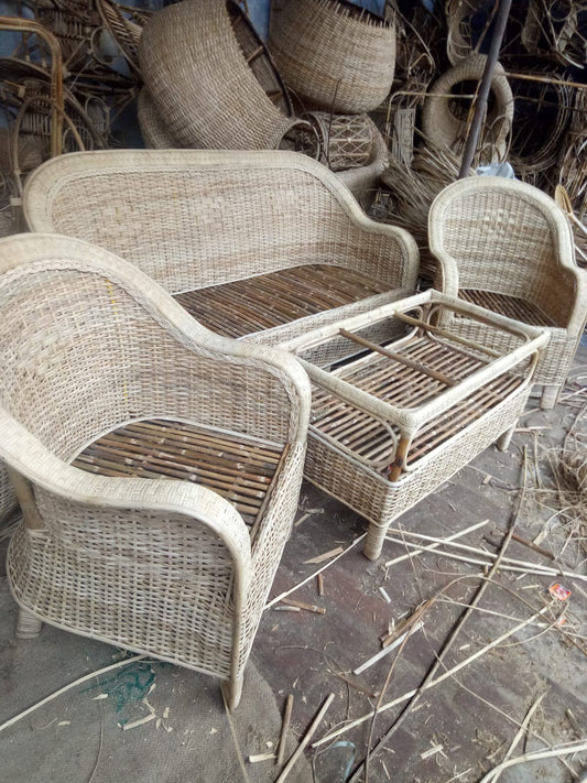 Cane Sofa Set With Table – Perfect for Home, Office, Living Room, Balcony, Garden, and More