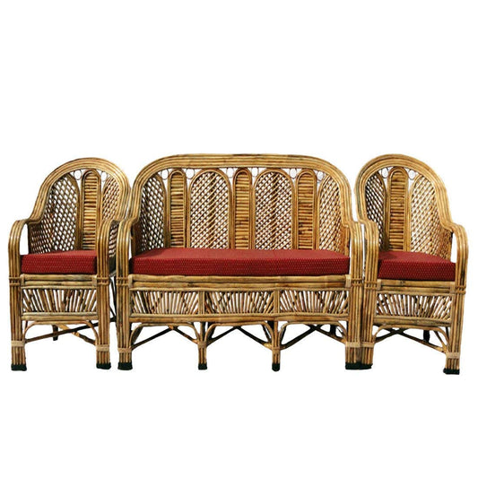 Cane Sofa Set with Table for Home, Living Room, Office, Garden, Resort with Cushion - Matka