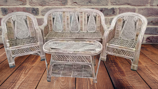 Cane Sofa Set with Table+2 side table for Home, Living Room, Office, Garden, Resort with Cushion