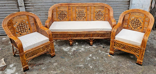 Cane Sofa Set with Table for Home, Living Room, Office, Garden, Resort with Cushion (Star)
