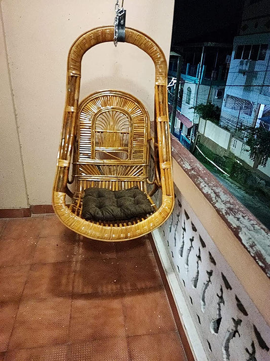 Cane Swing Hanging Chair, Jhula for All Ages – Kids & Adults (with Chain and Cushion)