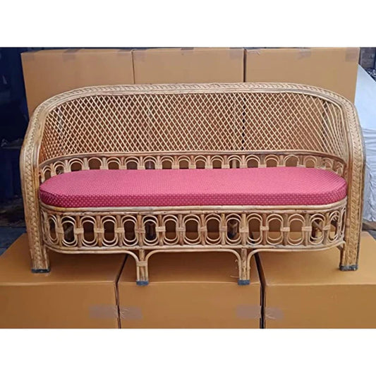 Cane Two Seater Sofa for Home, Living Room, Office with Cushion (Henna)