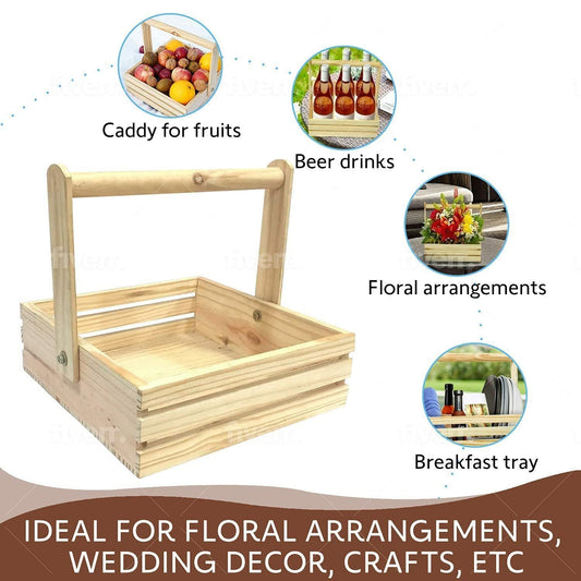 Pine Wood Gifting Square Basket with Wooden Handle(12*12*2.5 inch) Pack of 2