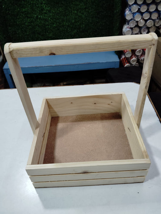 Pine Wood Gifting Square Basket with Wooden Handle(10*10*2.5 inch) pack of 2