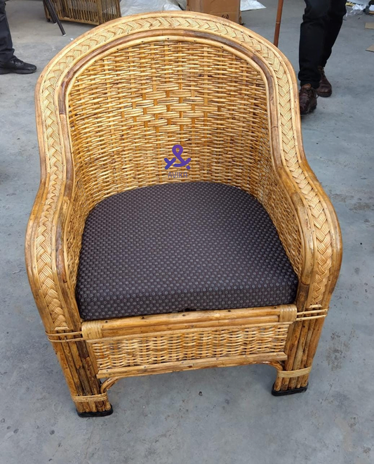 Bamboo Cane Sofa Chair For Terrace,Living Room, Cafe, Pubs, Bars, Restaurants,Lawn, Cafeteria with Cushion