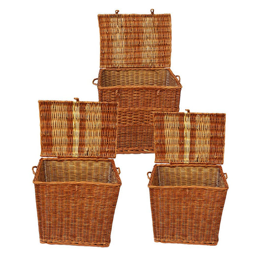 Bamboo cane Square Laundry Basket Set with Lid For Bathroom, Laundry Room Laundry Basket Toy Storage Basket Medium Set of 2
