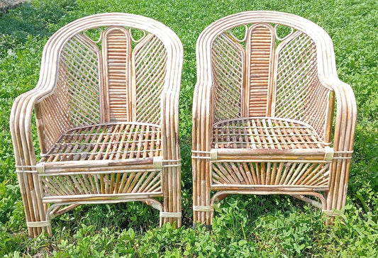 Bamboo Cane Sofa Set – Stylish & Durable Seating for Living Room, Balcony, Lawn & Resorts (1 Sofa + 2 Chairs)
