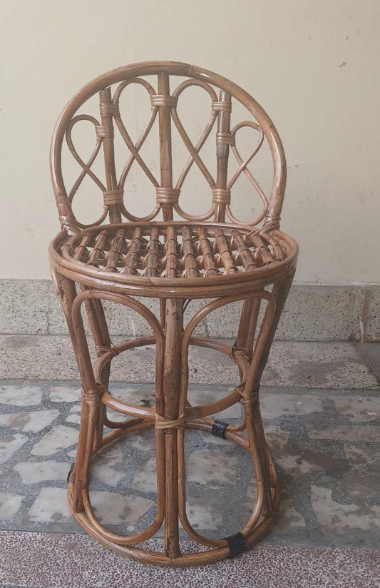 Bamboo Cane Stool with Back for Living Room, Balcony, Home Decor, Café